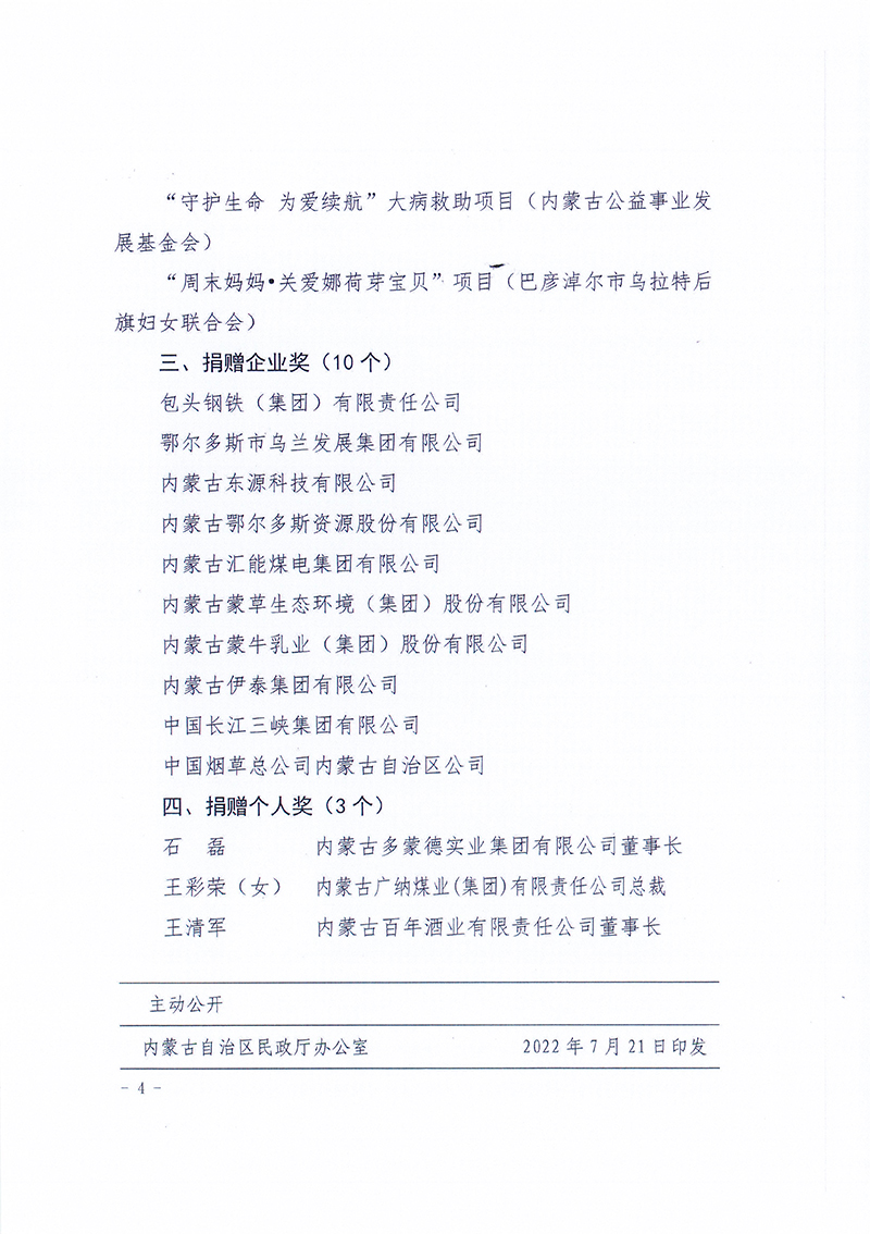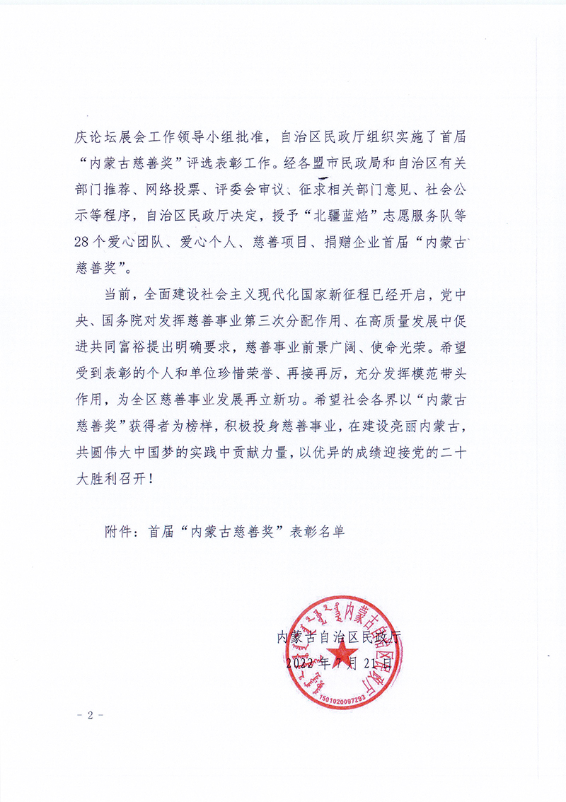 汇能集团荣获首届内蒙古 慈善奖“捐赠企业奖”荣誉称号