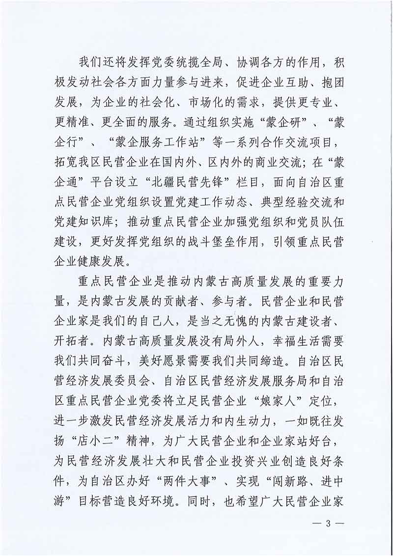 致自治区重点民营企业的一封信