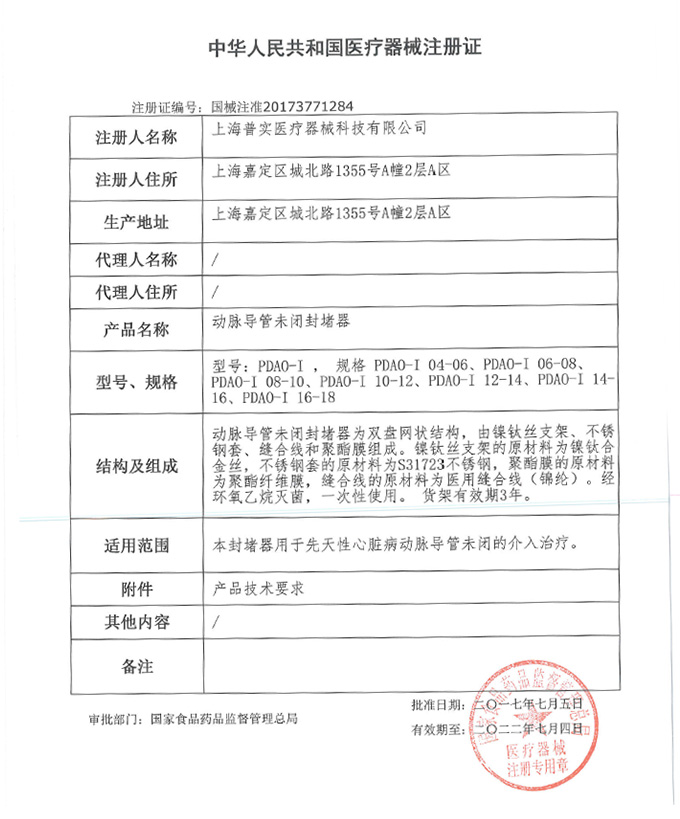 動(dòng)脈導(dǎo)管未閉封堵器